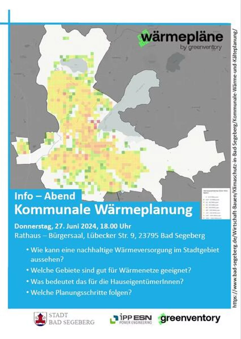 Die Stadt Bad Segeberg beschäftigt sich mit der Frage, wie in Zukunft die Wärmeversorgung in der gesamten Stadt klimaneutral gestaltet werden kann. Um einen strategischen Fahrplan dafür zu erhalten, hat die Stadt gemeinsam mit den Ingenieurbüros IPP ESN Power Engineering aus Kiel und greenventory aus Freiburg einen kommunalen Wärmeplan aufgestellt.