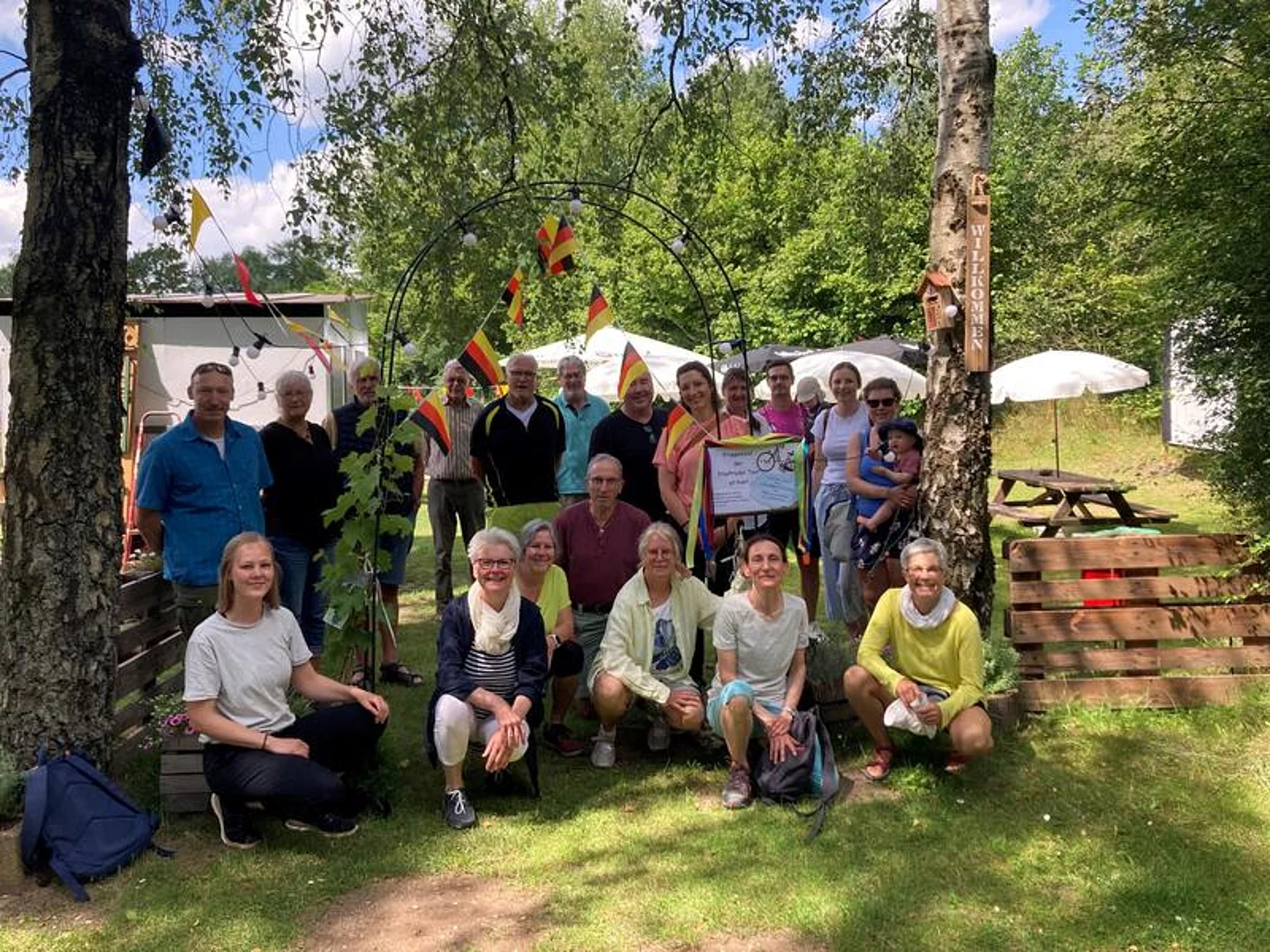 Nette Gespräche und schöne Aussichten füllten die Zeit bis zur Ankunft, wo am Sportlerheim ein überaus herzlicher Empfang mit belegten Brötchen, kühlen Getränken, Kaffee und Keksen, vorbereitet von Frau Dinse, wartete.