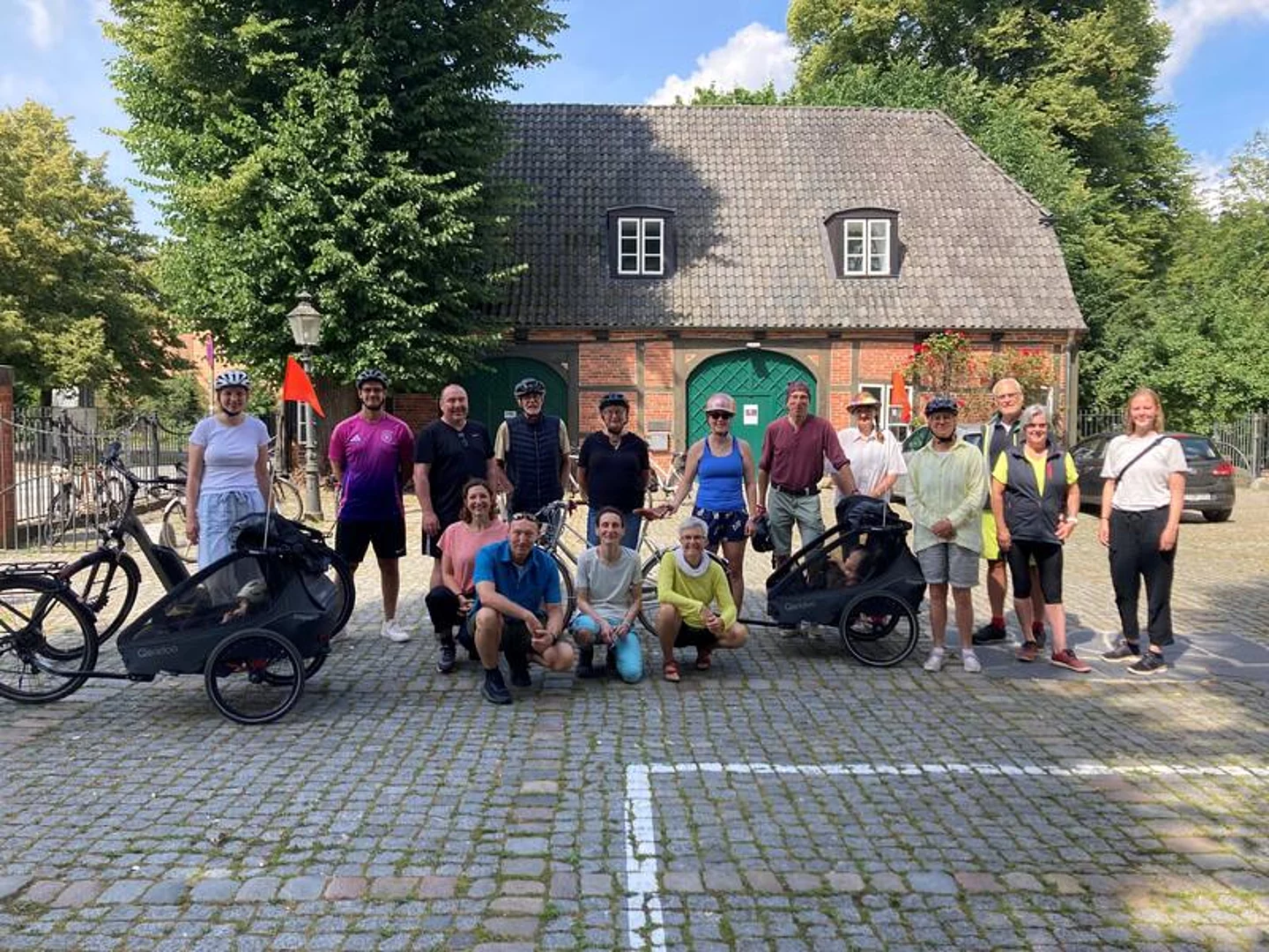 Auf Einladung von Frau Schramm-Ehmke, Herrn Bronsart und Herrn Seidel führte die gemeinsame Abschlusstour in die Gemeinde Trappenkamp. Gegen kurz nach 11 Uhr startete eine Gruppe von 16 Radfahrenden - im Gepäck zwei Kleinkinder und ein Hund - bei angenehmem Sommerwetter in Richtung Trappenkamp.