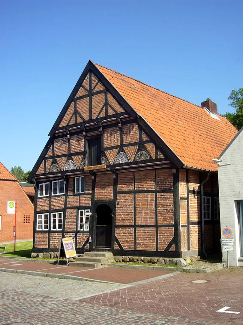 Bereits in den Jahren 1584/85 wurde das ursprüngliche Dreiständer- zum Vierständerhaus verbreitert. Während dieses ersten Umbaus erhielt es etliche Neuerungen: Beide Hauslängsseiten wurden zweigeschossig aufgestockt, so dass über Stube und Küche eine Schlafkammer („Upkamer") eingebaut werden konnte. Dieses „älteste Schlafzimmer Schleswig-Holsteins" war nur durch eine hoch liegende Luke betretbar. Dennoch konnte das Geschehen in der Diele und um das Haus herum durch Fenster von der Upkamer aus in alle Richtungen beobachtet werden.