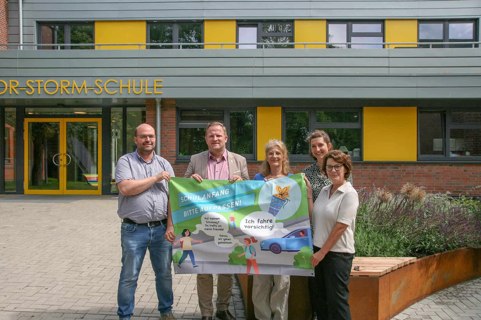 Am Mittwoch, den 10.09.2025 ist es soweit: In Bad Segeberg beginnt das neue Schuljahr und für viele Kinder mit der Einschulung ein neuer, aufregender Lebensabschnitt. Um diesen besonderen Moment zu feiern und gleichzeitig auf ein wichtiges Thema hinzuweisen, setzt die Stadt Bad Segeberg gemeinsam mit den der drei Bad Segeberger Grundschulen, den Schulleiterinnen Frau Look und Frau Am Wege-Plab sowie dem Schulleiter Herrn Ascheberg, ein sichtbares Zeichen für sichere und selbstständige Schulwege. An den Grundschulen hängt zum Schulstart ein Banner, das alle daran erinnert, sich vor Schulen besonders aufmerksam und rücksichtsvoll zu fahren.