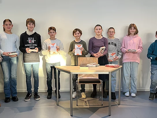 Copyright-Angaben zu den Fotos: Gruppenbild der Teilnehmer, © Sigrid Gröhn; Siegerfoto, © Thomas Minnerop. Eine Einwilligung zur Verwendung der Fotos für Pressezwecke durch die Erziehungsberechtigten liegt der Bücherei vor.