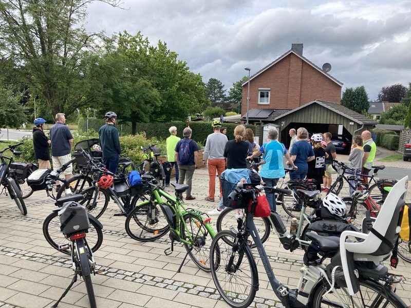 Reges Interesse bestand auch an der Feierabendtour am 26. Juni mit Beate Oedekoven von der Verbraucherzentrale Schleswig-Holstein. Passend zu dem wechselhaften Wetter während des Aktionszeitraums, haben sich die Teilnehmenden mit den Folgen des Klimawandels und Maßnahmen zur Anpassung an Starkregen und Hitzeereignisse beschäftigt.