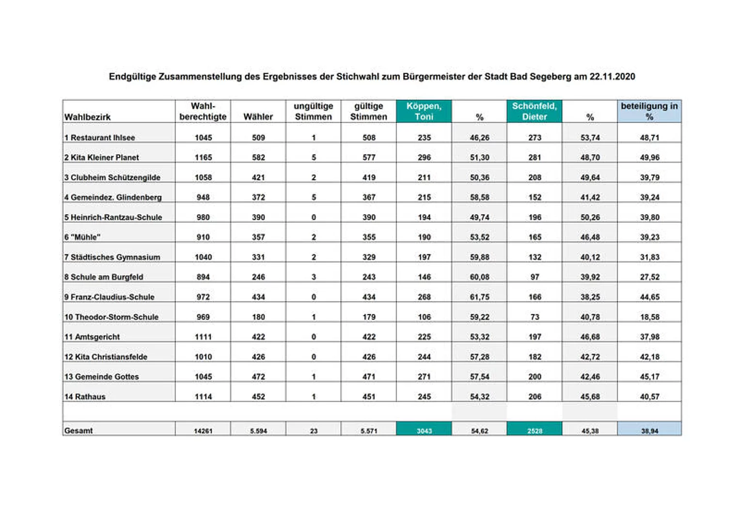 Hier die Wahlergebnisse der Stichwahl vom 22.11.2020 für Sie aufbereitet.