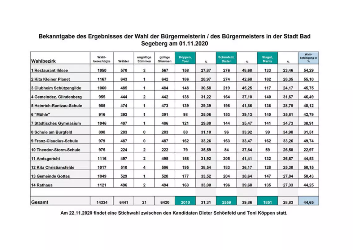 Wahlergebnisse 1.11.2020